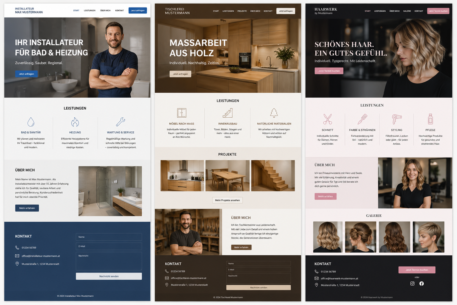 Saubere Darstellung der Leistungen, Person und Kontaktmöglichkeiten